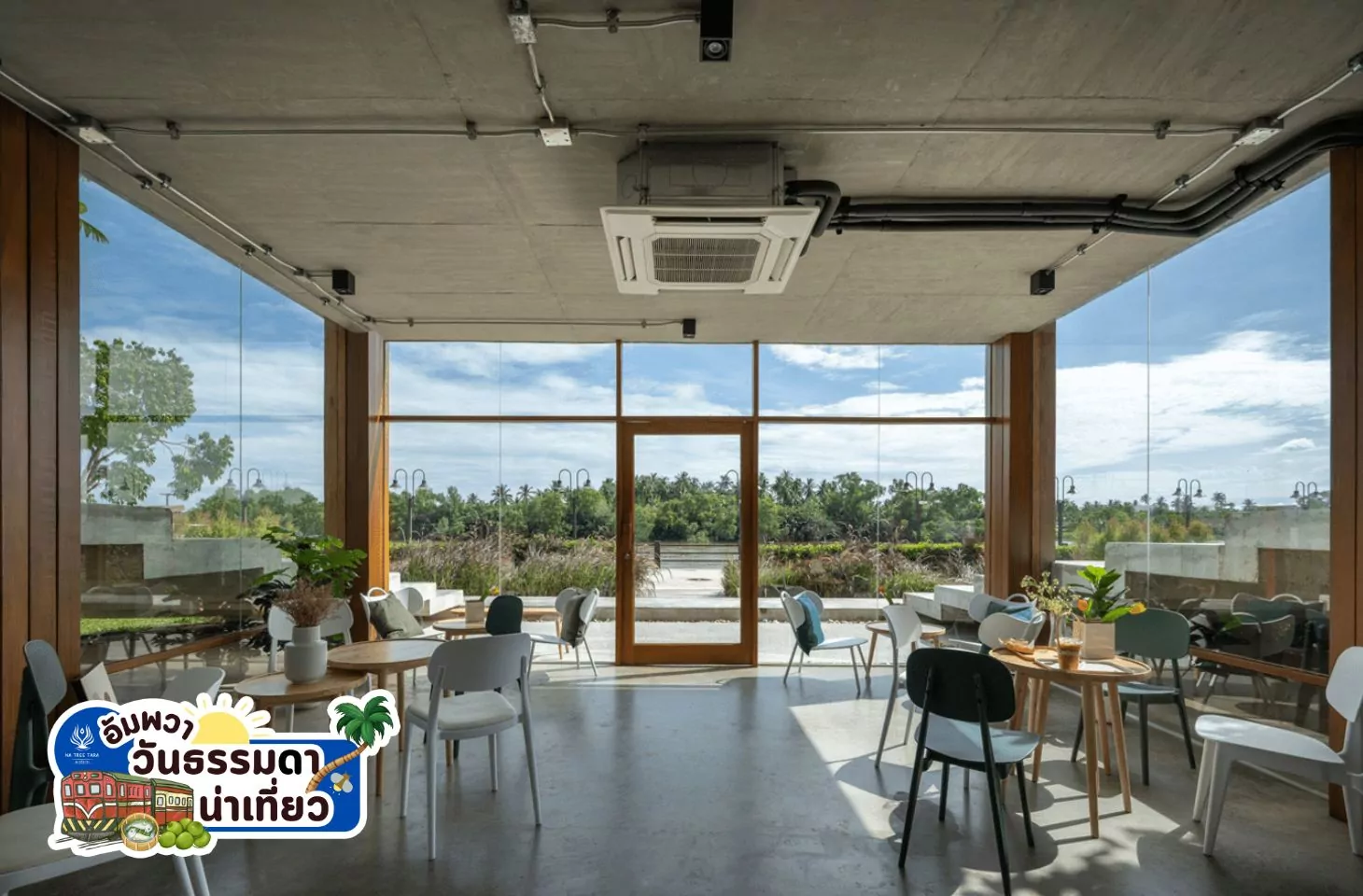 ที่นี่ไม่ได้มีดีแค่ตลาดน้ำอัมพวาหรือร้านอาหารเท่านั้น แต่ยังเต็มไปด้วย คาเฟ่ริมน้ำบรรยากาศสุดชิล ที่ซ่อนตัวอยู่ท่ามกลางสวนและวิถีชีวิตของชาวแม่กลองอย่างกลมกลืน จะนั่งจิบกาแฟช้า ๆ มองสายน้ำไหล หรือจะถ่ายรูปเก็บโมเมนต์ดีๆก็มีครบทุกฟีล